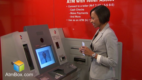 2012年,美元银行率先推出视频自动取款机。这家总部设在匹兹堡市、有着157年历史的区域性银行是美国第一家使用VTM的银行。2013年,美国银行业也推出了其视频互动ATM。上图是美国银行采用迪堡公司开发的VTM设备,除了提供基本的服务(现金和支票存款、取款和账户查询),还能够通过安装在机器上的摄像机与后台的银行工作人员进行联系。
